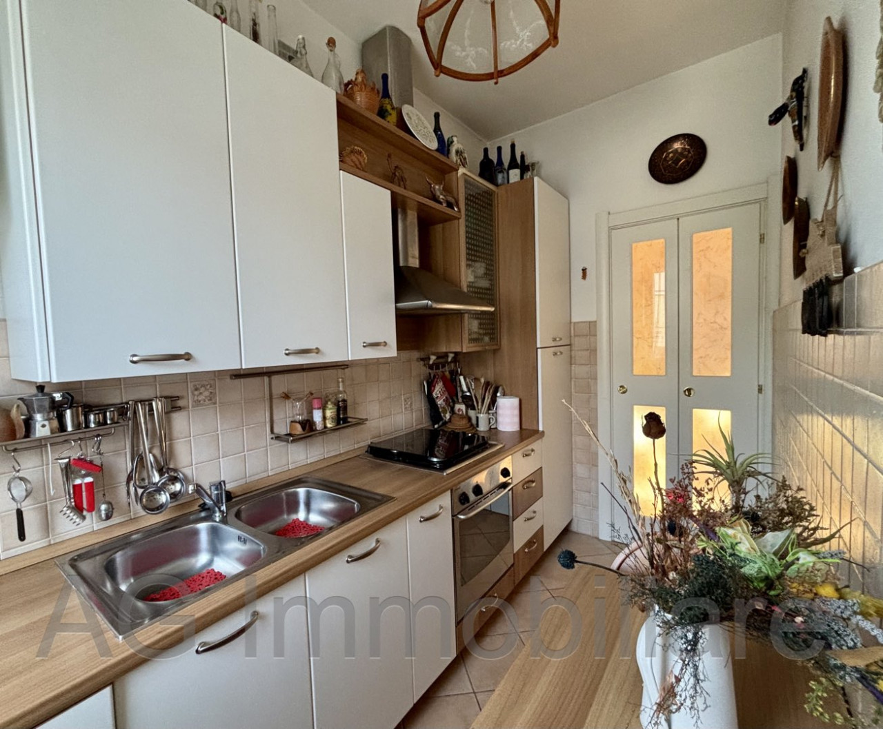 La cucina, separata e funzionale, è completa di elettrodomestici e dispone di un ampio piano di lavoro, ideale per chi ama cucinare. Il bagno con vasca, semplice e luminoso, è dotato di arredi pratici e capienti.