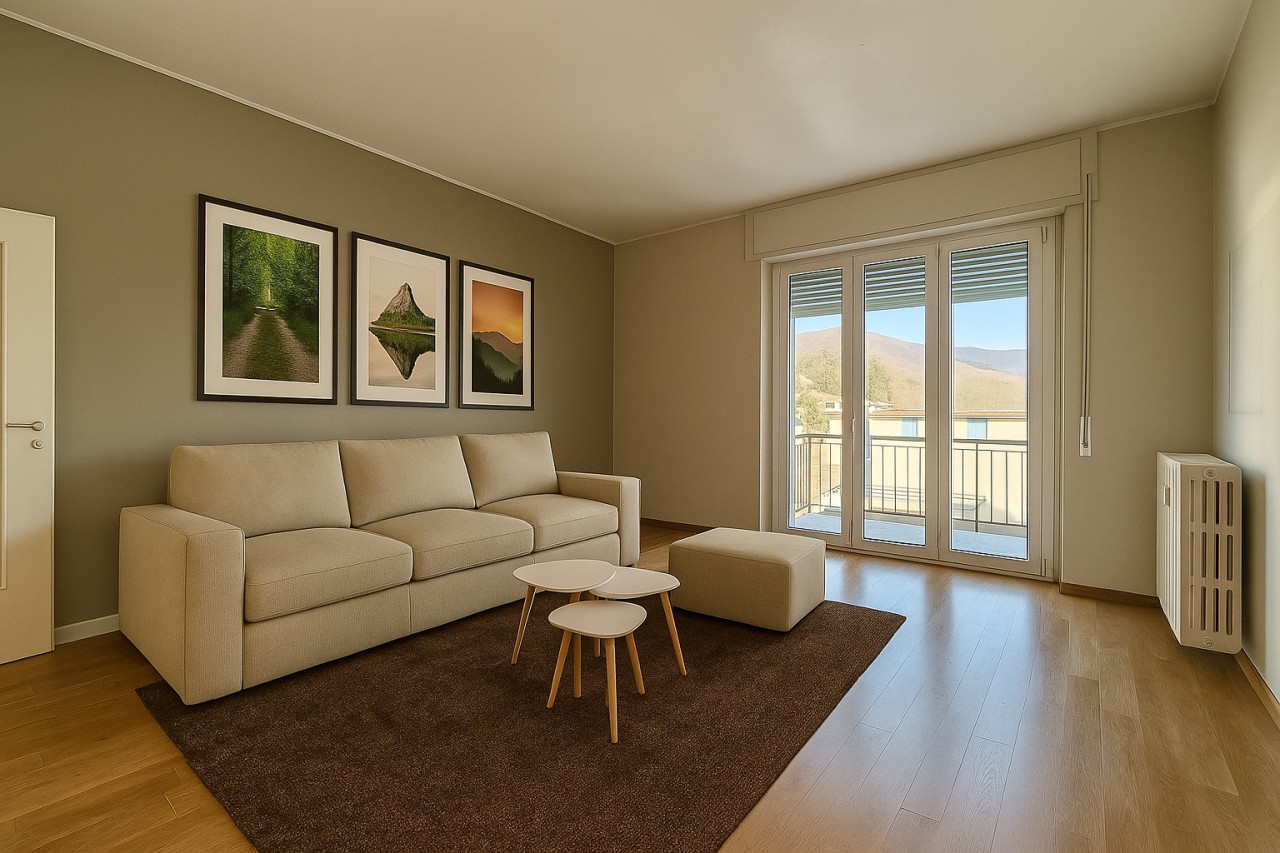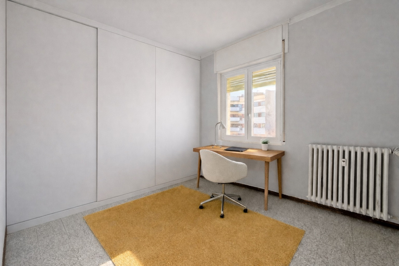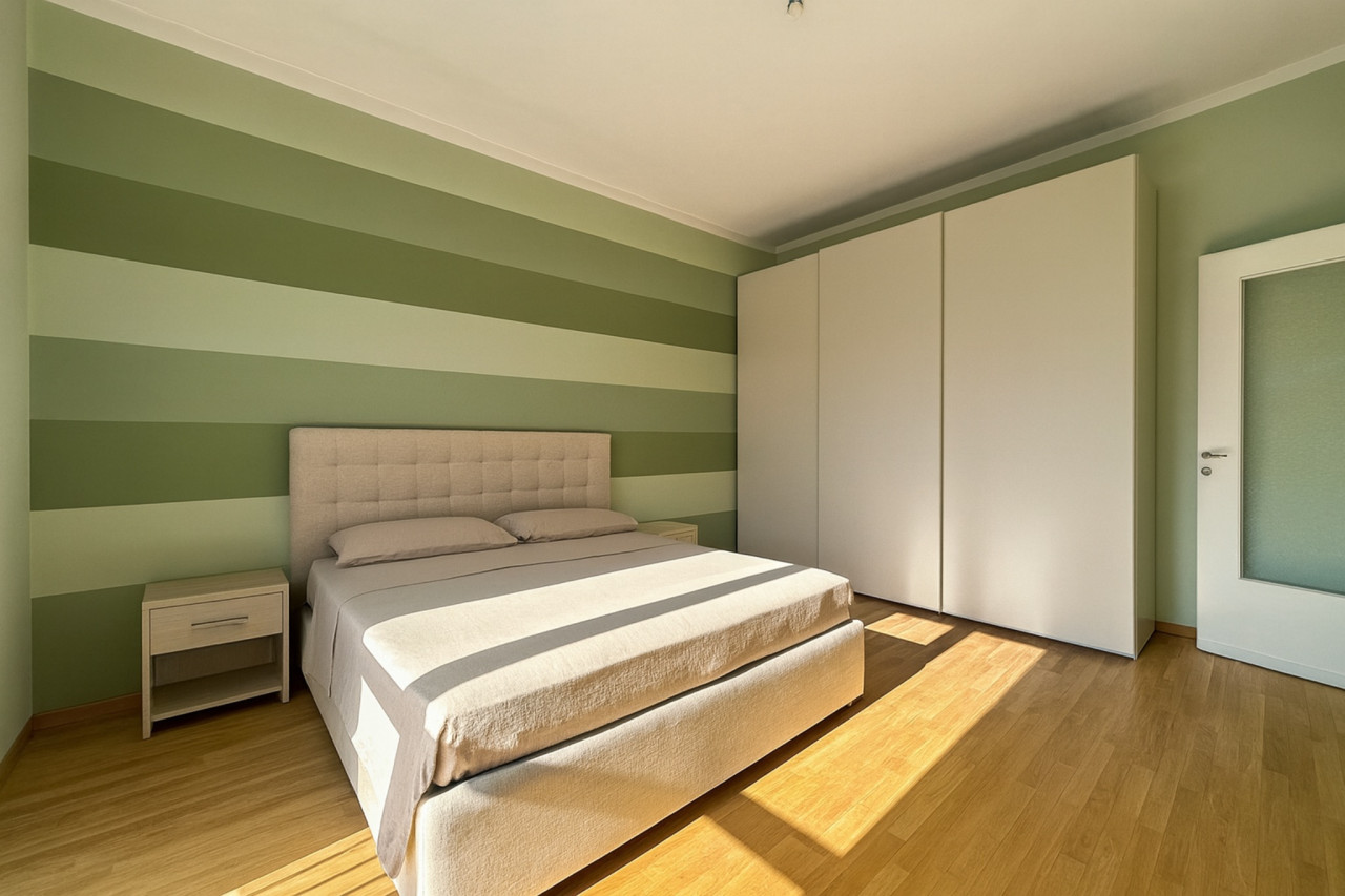 L’ingresso conduce a un ampio soggiorno con accesso diretto al balcone, una cucina funzionale e due camere da letto spaziose, ideali per una famiglia o per chi desidera una stanza aggiuntiva da adibire a studio. Il bagno, comodo e ben organizzato, completa la zona notte. Due balconi panoramici offrono un affaccio arioso sulla città.