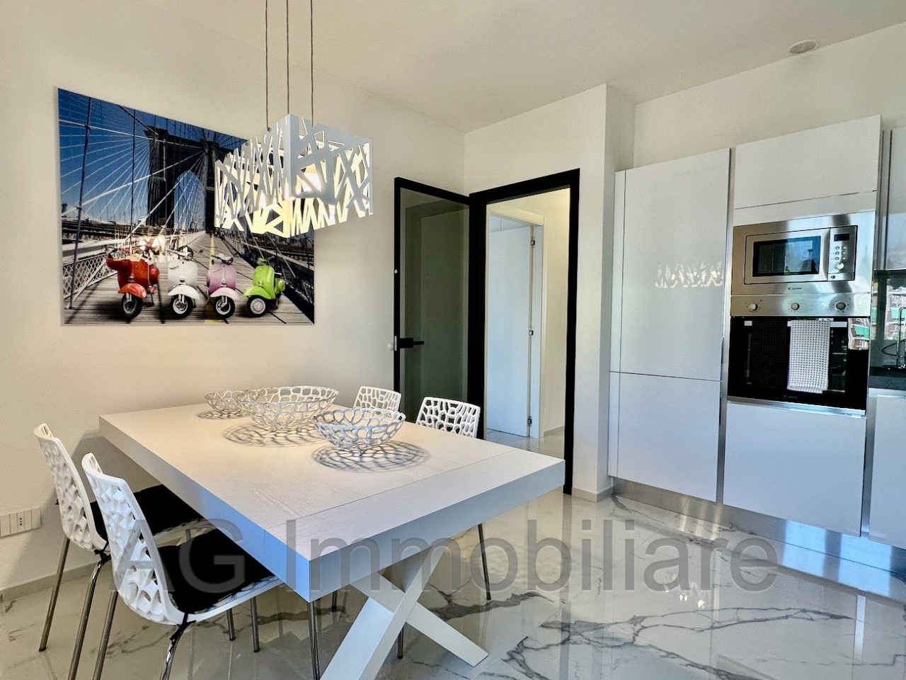 Der direkte Zugang führt in das helle Wohnzimmer, von dem aus man die große, voll ausgestattete Wohnküche, ein Doppelzimmer mit romantischem Balkon und das erste der beiden Badezimmer mit einer schönen Dusche erreicht. Alle Räume sind modern, schlicht und elegant eingerichtet.