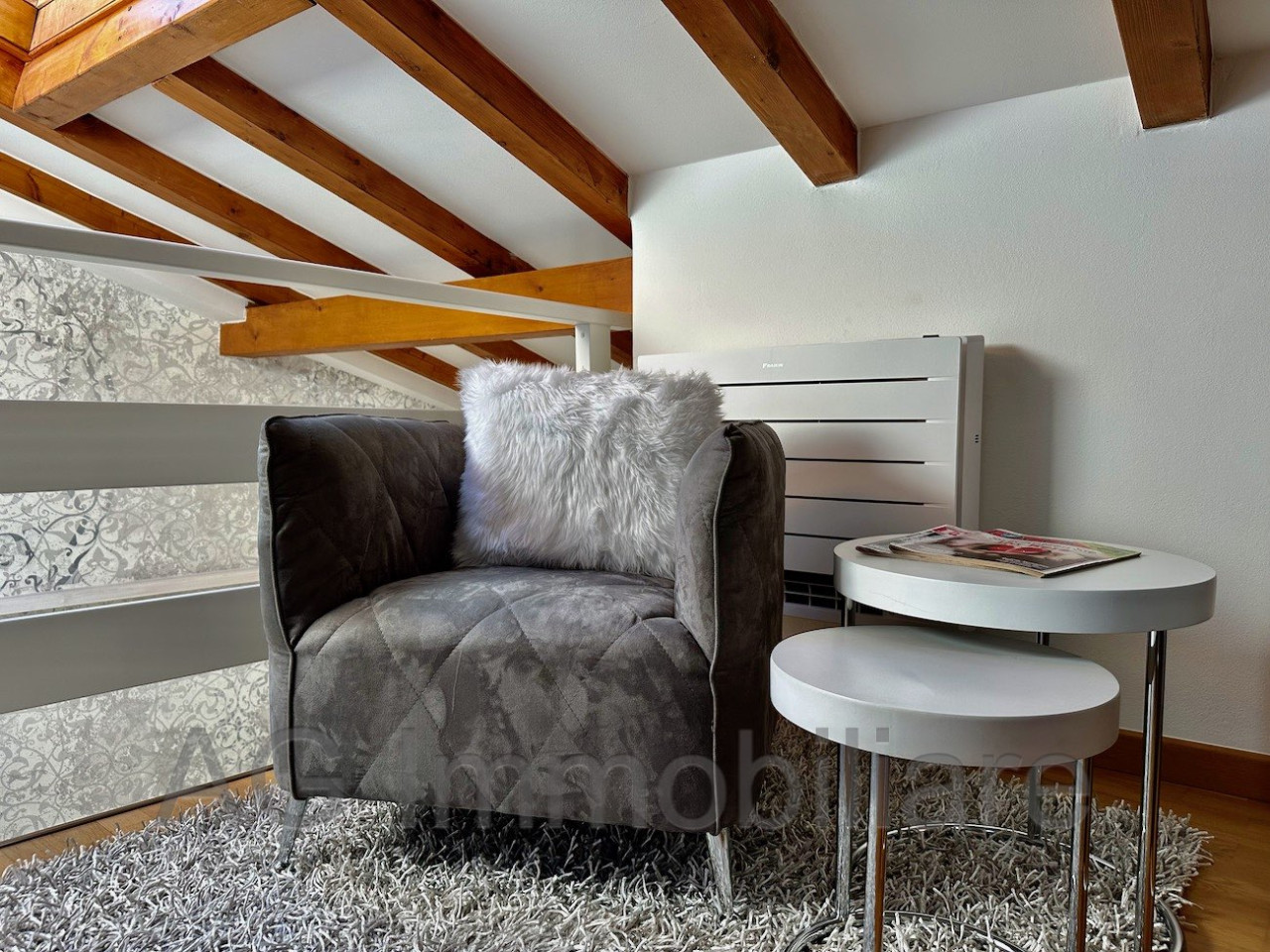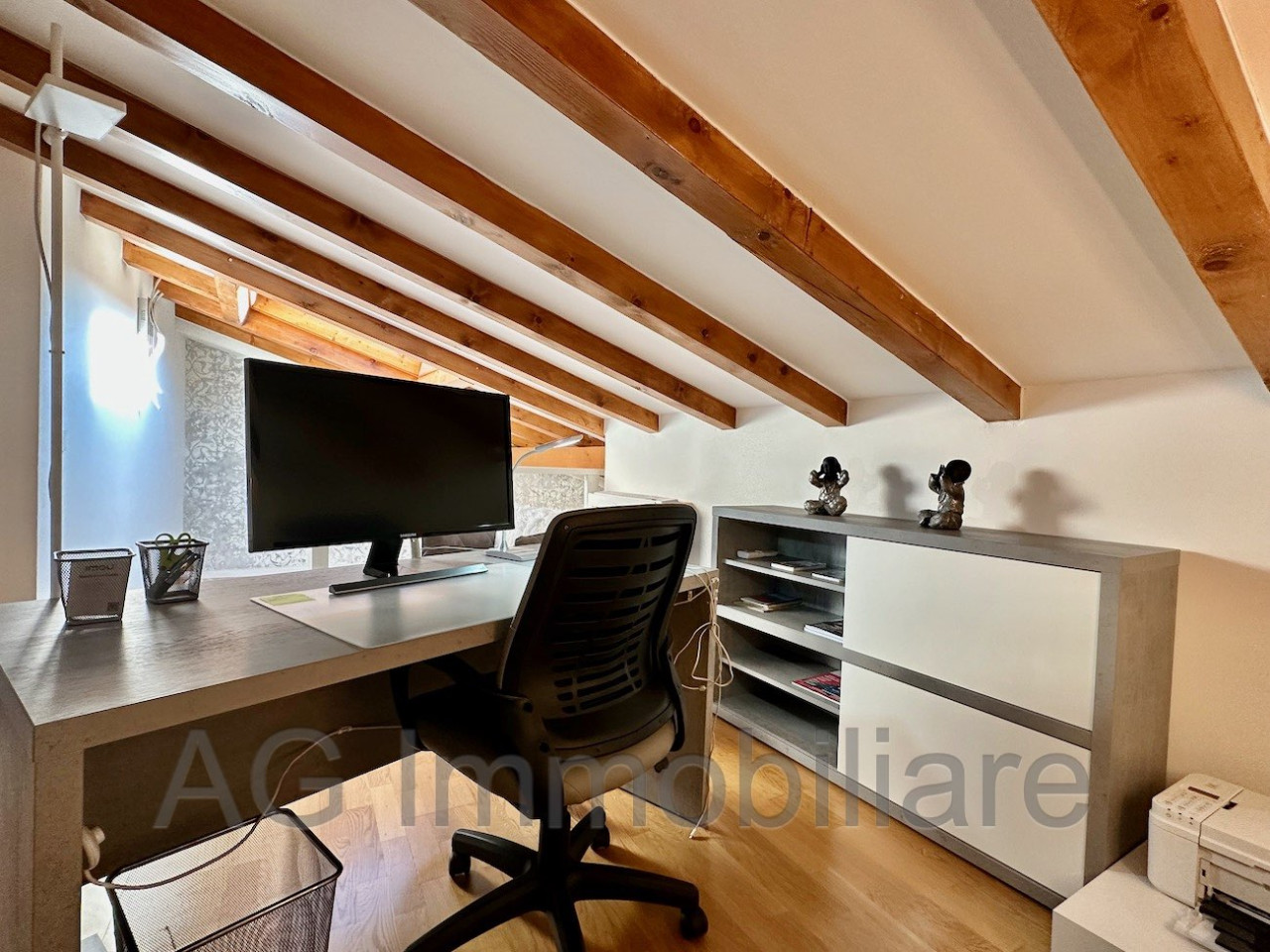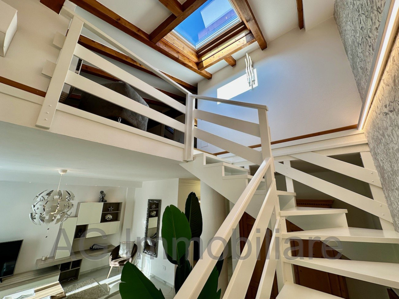 Die Wohnung befindet sich im zweiten Stock des Gebäudes, das über einen Aufzug verfügt, und erstreckt sich über zwei Ebenen, die durch eine Innentreppe miteinander verbunden sind.