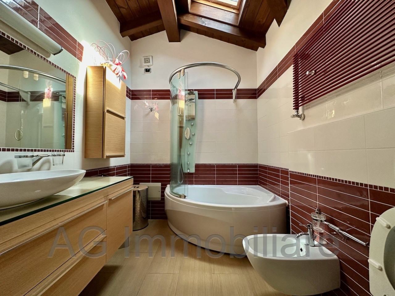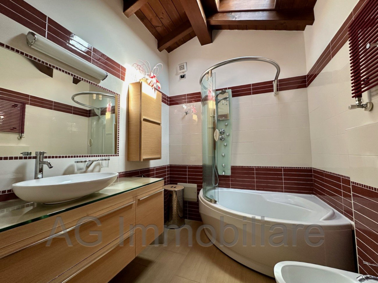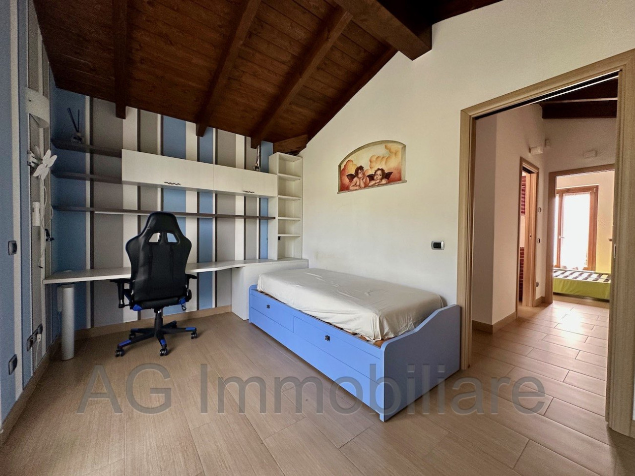 Al piano superiore due ampie camere da letto, di cui una con cabina armadio, ampia stanza pluriuso e bellissimo bagno con vasca angolare.